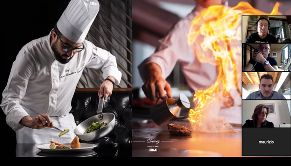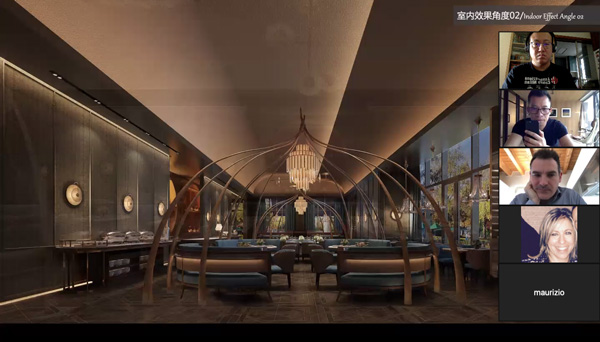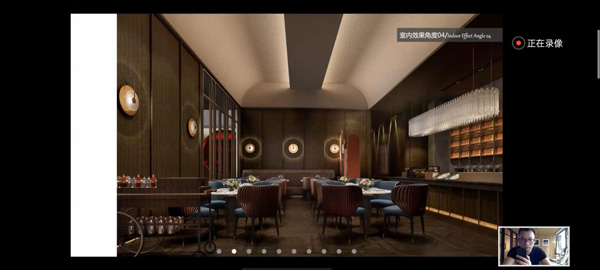 他將自己親自主持設(shè)計(jì)的深圳高端餐飲品牌——都一樂斯項(xiàng)目進(jìn)行講解!從接到項(xiàng)目初期到規(guī)劃設(shè)計(jì),找到設(shè)計(jì)靈感來源,再如何把靈感從抽象到具象落地呈現(xiàn)到項(xiàng)目的整個(gè)過程,向國際設(shè)計(jì)交流會議進(jìn)行講解和展示!他認(rèn)為設(shè)計(jì)師對美會有獨(dú)特的眼光和遠(yuǎn)見,濃縮凝聚成獨(dú)有品味呈現(xiàn)在設(shè)計(jì)作品中!屏幕下,隔空能感受到國際設(shè)計(jì)師對該項(xiàng)目作品頗感興趣和熱情,對設(shè)計(jì)方案贊賞有佳!