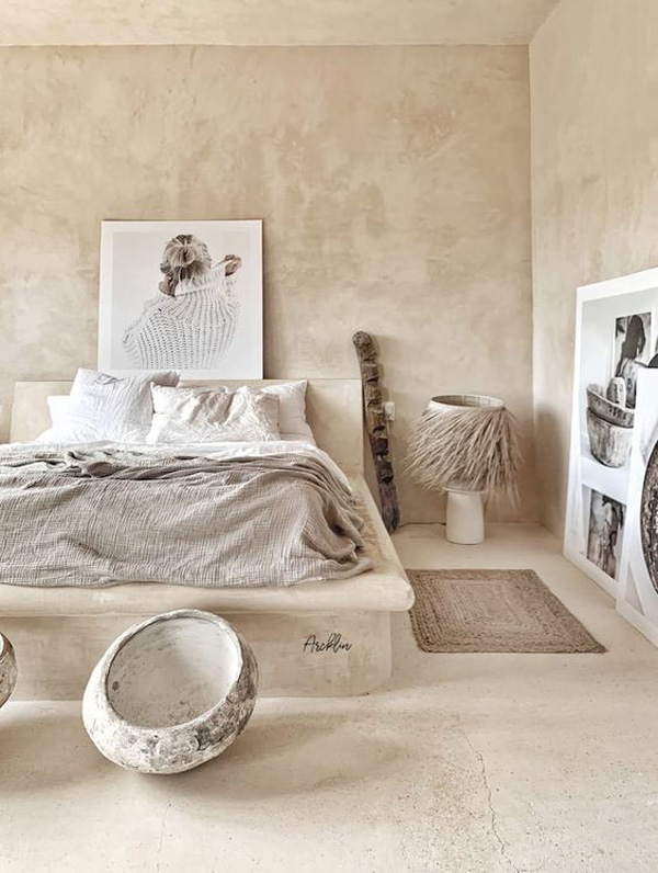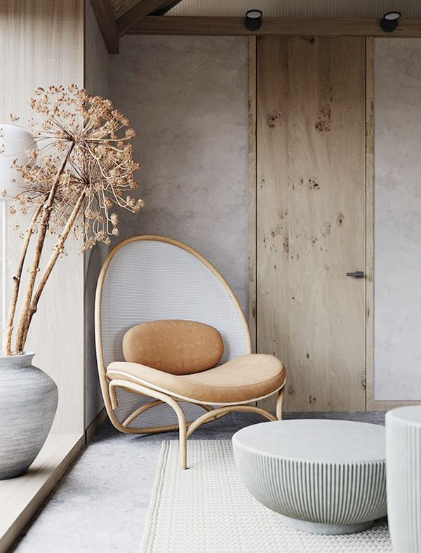 四.對(duì)墻體質(zhì)感的偏愛,注重表現(xiàn)粗狂原始的肌理與舒適細(xì)膩的軟裝配飾對(duì)比。