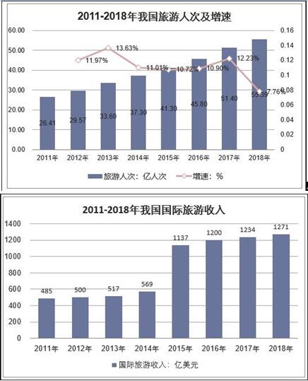 2018年國內(nèi)旅游55.39億人次,收入5.13萬億元,分別同比增長10.76%和12.3%。入境旅游1.41億人次,國際旅游收入1271億美元,分別同比增長1.2%和3.0%。預(yù)計2019年達到6.1萬億元,中國旅游業(yè)的發(fā)展刺激著酒店業(yè)需求的增長。