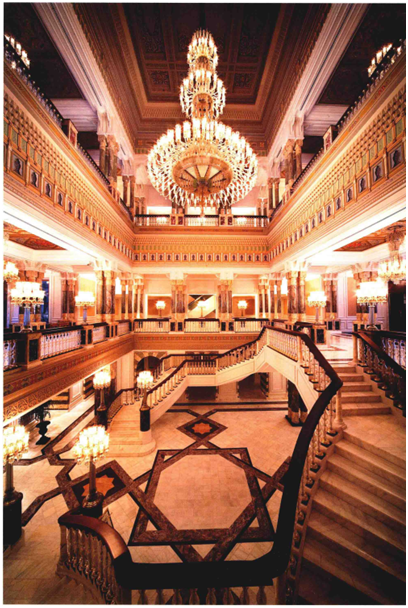 此酒店大堂為典型的土爾其風(fēng)格主題酒店設(shè)計(jì),整個(gè)大堂集現(xiàn)代化、奧斯曼風(fēng)格特色為一體,酒店大堂在造型、選材、燈光及裝飾品上都圍繞古典主義這一主題充分展現(xiàn)其精髄,營(yíng)造出尊責(zé)、奢華的感覺(jué)。一進(jìn)大堂,天花懸吊的水晶燈金光燦燦,讓整個(gè)空間仿佛都沾上皇族的金色氣息,19世紀(jì)的家具、地毯和高大的圓柱,讓人一入內(nèi)就能感受到古典而恢弘的皇家風(fēng)范,大堂休息區(qū)精致的吊燈、絲絨軟墊躺椅與黃金飾物,再點(diǎn)綴著鮮花,給人眼前一亮的感覺(jué),奢華而有活力。