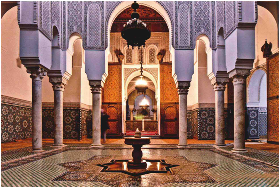 傳統(tǒng)的摩洛哥室內(nèi)裝飾藝術(shù)源自于柏柏爾人。他們傳統(tǒng)的紡織品、鍛造金屬、彩色玻璃、陶器、皮革、木雕、厚蒲團(tuán)、燈籠式吊燈等至今仍被世界各地的設(shè)計師們熱衷應(yīng)用于其折中風(fēng)格的作品當(dāng)中。今天的摩洛哥工匠和設(shè)計師們繼承了摩洛哥本土的傳統(tǒng)裝飾藝術(shù),運用本地的材料和華麗的裝飾圖案,創(chuàng)造出獨一無二的摩洛哥室內(nèi)空間,風(fēng)靡世界各地。