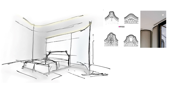對(duì)前期所獲得資料的整理和研究后,接下來就是運(yùn)用圖式的方法將具體內(nèi)容和形式落實(shí)到具體空間中。這個(gè)階段一般是從草圖設(shè)計(jì)開始。在草圖階段,設(shè)計(jì)師就需要對(duì)室內(nèi)的功能分區(qū)、設(shè)計(jì)的形式與風(fēng)格、家具的形式與布置、裝修細(xì)節(jié)與材料等有一個(gè)總體的把控,大致確定出空間的形式、尺寸和色彩等。